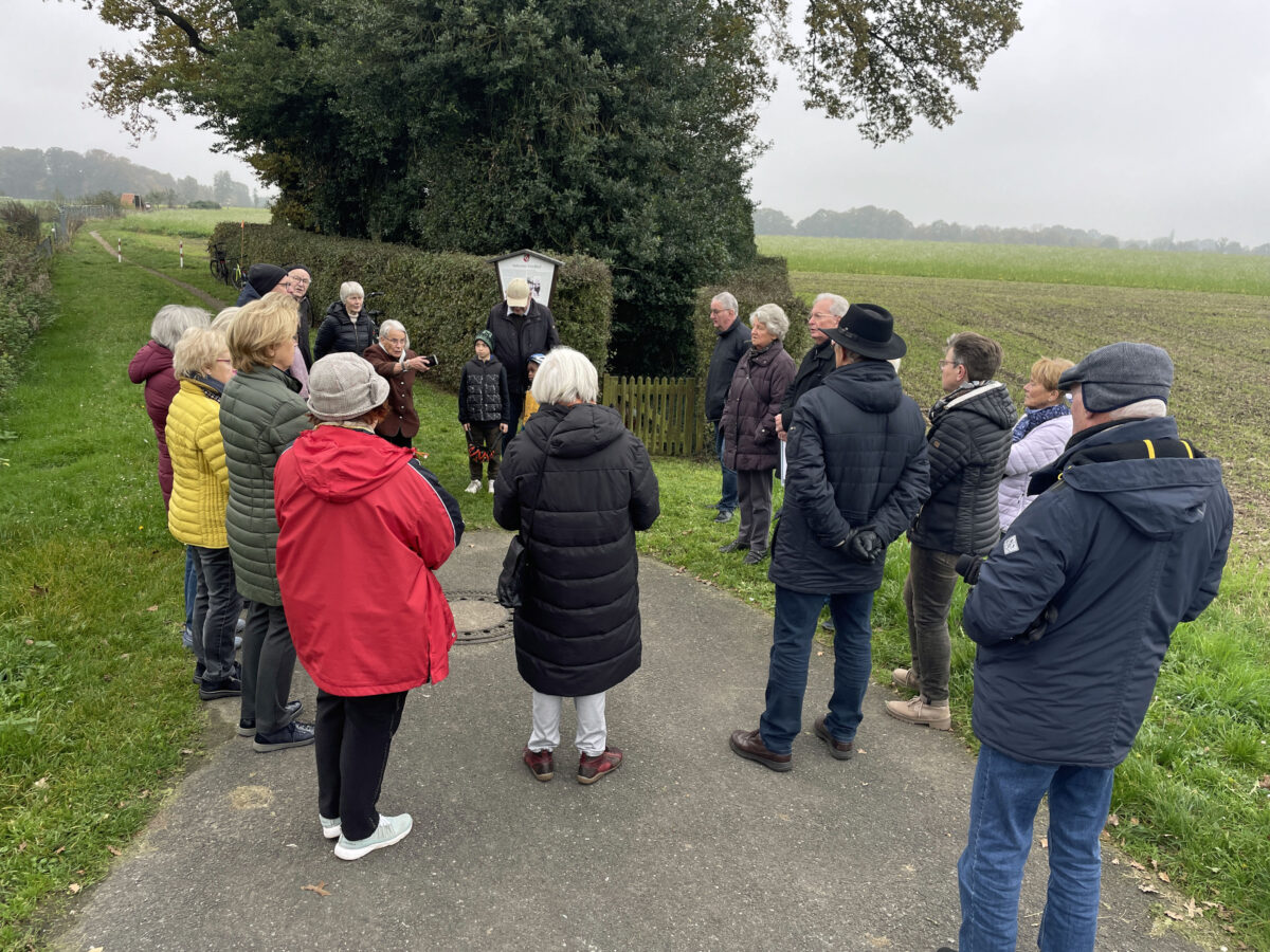 Carlo Behler berichtete über die Geschichte der Familie Cahn, die 1824 in Erle heimisch wurde und deren Geschichte auf der Geschichtstafel am Friedhof dokumentiert ist. Als letzter der Familie wurde Levi Cahn im März 1933 kurz nach der Ernennung Hitlers zum Reichskanzler noch mit allen Ehren auf dem Friedhof bestattet. Seine Tochter Adele, die mit einem christlichen Deutschen in „privilegierter Mischehe“ verheiratet war, überlebte die Kriegszeit versteckt am Niederrhein und Tochter Erna konnte mit ihrem jüdischen Mann noch 1938 nach Südafrika auswandern.