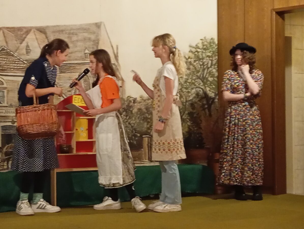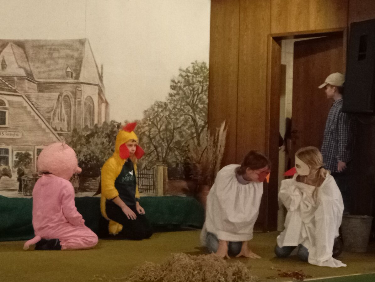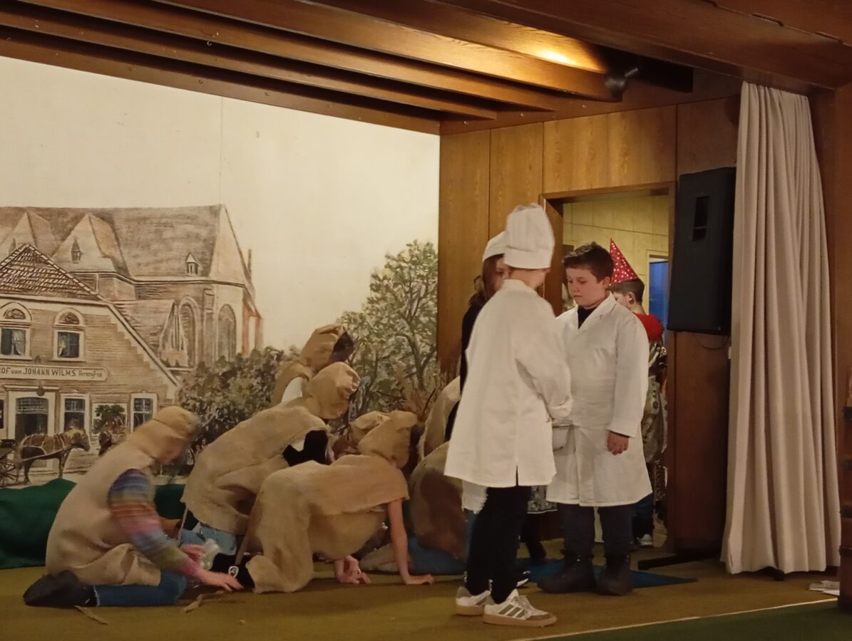Einen vergnüglichen plattdeutschen Nachmittag erlebten die Besucher bei Kaffee und Kuchen im vollbesetzten Saal von Brömmel-Wilms in Erle. Die großen und kleinen Brejpottspöllers führten eine ganze Reihe sowohl selbst verfasster als auch in Erler Platt übertragener Sketche auf. Bei dem Sketch „Dat Püggesken un de Kassen“ (Das Ferkel und die Kirschen) aus Michel aus Lönneberga konnten die kleinen Schauspieler ihrem Bewegungsdrang freien Lauf lassen. Denn dat Püggesken jagte, berauscht von den vergorenen Kirschen, die Michel auf den Misthaufen geschüttet hatte, den Hahn und die Hühner bis zur Erschöpfung. Bewundernswert ist neben dem urigen Platt aus Kindermund immer wieder auch die aufwendige bunte Kostümierung, in der die Kinder insbesondere in Tierrollen auftreten, wie z. B. auch als Ratten im bekannten Märchen „Denn Rattenfänger van Hameln“.